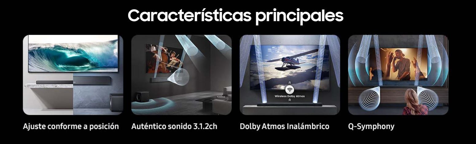 * Transmisión Dolby Atmos inalámbrica por Wi-Fi, compatible con pantallas Samsung 2022-2025. Se requiere contenido de origen Dolby Atmos. |